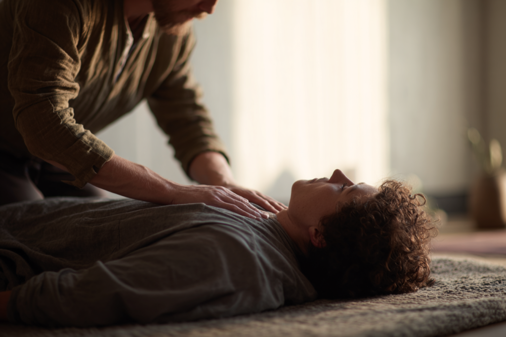 בסוף הטיפול בדרך כלל יש רגע של מעבר. המטופל מתיישב לאט. המטפל בודק איך מרגישים. לפעמים נותנים מים. לפעמים פשוט נשארים רגע בשקט.
