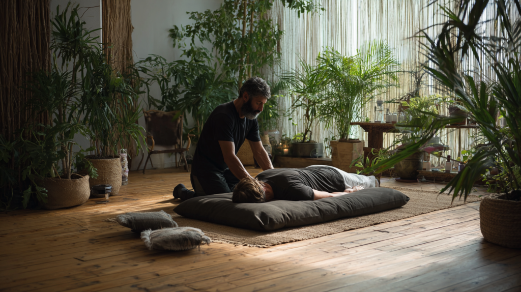 בהקשר של חיבור לאדמה, שיאצו עובד הרבה עם עקרונות של קרקוע, משקל, נשימה, ותחושה של גבולות. המטפל משתמש במשקל הגוף שלו, לא בכוח שרירי. זה יוצר איכות של יציבות, כמו אדמה שאפשר להישען עליה. כשמערכת העצבים מרגישה שיש קרקע, הגוף יכול להתחיל לווסת את עצמו.